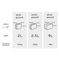 Wash Pouch je jedním z balicích prvků Packing Tools, které nabízí nekonečné možnosti přizpůsobení, uspořádání a ochranu oblečení, obuvi, kosmetických potřeb, drobné techniky a foto/video výbavy. Jsou navrženy tak, aby perfektně seděly (nejen) v cestovních zavazadlech Peak Design Travel Line. Nabízí snadný přístup, promyšlené uspořádání, odolné materiály a jednotnou estetickou čistotu. Každý balicí prvek byl navržen od samého počátku jako samostatný produkt, který má svou kategorii posunout vpřed jedinečným stylem, vlastnostmi a inovacemi.