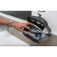 Toaletní nebo hygienická taštička, kosmetické pouzdro... nazývejte to jak chcete, ale je to jedna z nejdůležitějších věcí pro cestování a může být také jednou z nejvíce frustrujících. Při navrhování Wash Pouch jsme se zaměřili na vytvoření perfektní rovnováhy mezi elegantní jednoduchostí a promyšlenou funkčností. Ať už taštička stojí (vzpřímeně) na podložce nebo visí pomocí háčku (lze ho skrýt), vždy poskytuje kompletní přehled obsahu a přístup k vašim toaletním potřebám. Početné vnitřní kapsy z nylonu s povrchovou úpravou TPU, magneticky uzavíraná kapsa na zubní kartáčky, vnější kapsa na žiletky a vnitřní pouzdro na zip udržují věci perfektně uspořádané a čisté. Všechny kapsy se snadno otočit ven, aby je bylo možné rychle vyčistit.